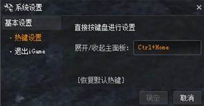 | 可以对热键进行设置以及退出iGame。 注:退出iGame后要重新启动游戏才会启动。 | ||