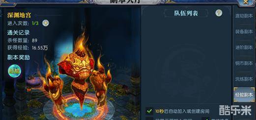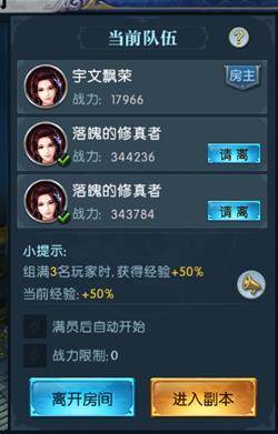 初期跟着主线任务走,很轻松就可以达到开启经验副本的等级,经验副本有单人进入和队伍进入两种方式,其中组满3人队伍会有额外的经验加成,想要高经验的玩家一定要组满强力队友