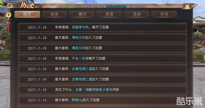 4、点击操作,我们可以看到领袖对血盟成员管理的变动信息,如果觉成员变动有异议,可以及时向领袖提出。