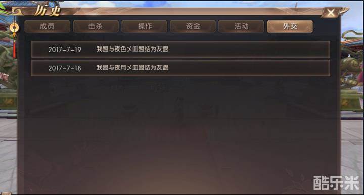7、点击外交,我们可以看到血盟与其他血盟建立关系的时间。