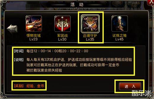 玩家角色达到35级并完成相关主线任务时,开启活动中的边境守护。