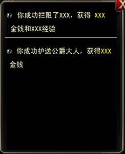 成功护送获得奖励:你成功护送【护送名】,获得佣金XX金币和XX经验。