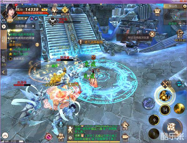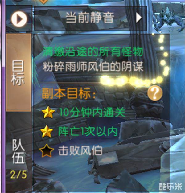 那么下面来说下这个副本的打法,首先进入副本,可以看到一段系统提示的话语,直接点击右上角跳过就可以了,然后在左边可以看到副本的战斗提示,通关要求和副本目标也就是星级要求,要求十分钟以内通关,死亡次数不超过1次,以及击败最后的BOSS风伯。