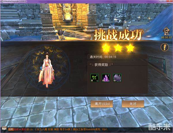 风伯打死之后副本就算通关了,可以看到通关奖励有灵草还有装备打造材料。点击离开副本即可。