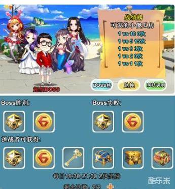 这个就是传说中的我是boss界面了,引入眼帘的是战绩榜第一的超级大佬的阵容图。向下看是胜利与失败的奖励,也就是奖励是双面的。输了也有奖励。这个福利就十分不错了。