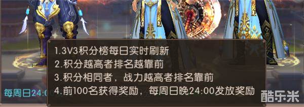 点击问号图标可以看到3V3积分榜的具体规则,每日实时刷新,排名机制,以及奖励发放。