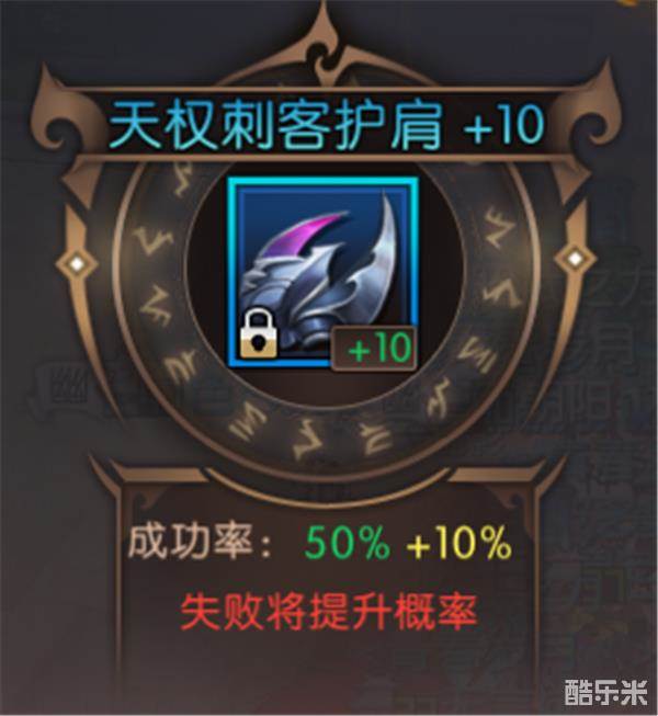 每件装备强化到一定的等级之后初始的强化成功率都是固定的,每次强化失败会增加5%的强化成功率。即初始成功率后面的+X%,每次失败后所加的成功率叠加,直至强化成功,+号后面所加的百分比会清空,重新回到固定百分比。