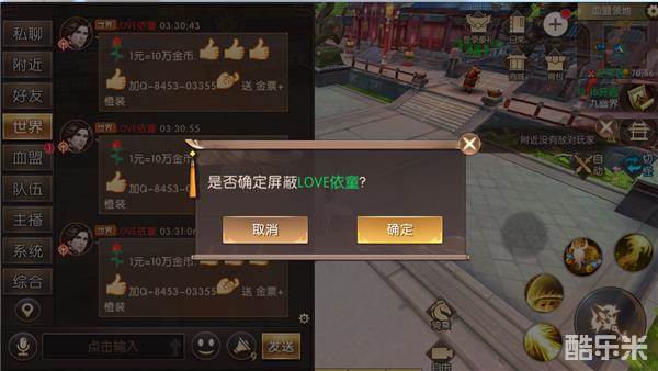 每当我们遇到世界打广告,刷屏影响我们正常游戏的时候,要怎么来屏蔽这位刷屏的勇士呢,只需要一个小小的操作,就可以还各位勇士的世界一片清静。
