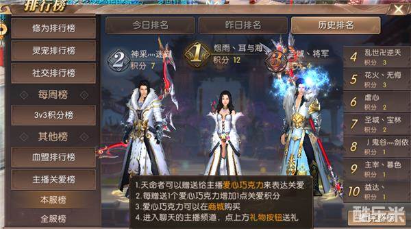 在榜单下方问号处,点击可以看到该榜的详细规则。爱心巧克力可以在商城直接购买。每赠送一个爱心巧克力增加一点的关爱积分。积分越高排名越靠前。虽然这个排行榜没有其他排行榜一样的奖励,但是依旧有很多玩家上榜哟。