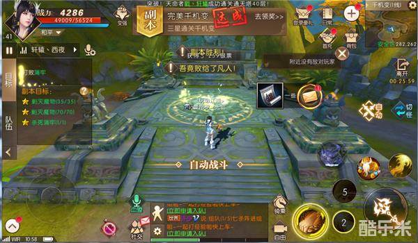 在完成一系列支线任务之后,会出现一个青龙的考验,需要大家完成一个千机变副本。三星通关这个副本还可以获得成就完美千机变以及10金票的奖励。想要三星通关这个副本并不难,只要完成剿灭70只魔物和杀死boss蒲牢即可,杀死boss并没有什么难度,主要是70只魔物,这个需要在副本刷新怪的时候尽量使用群攻技能,并且合理利用四个角上减CD和加速的buff,这样就可以轻松3星通过了,你get到这个技能了吗?