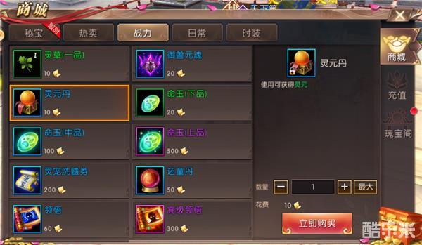 灵元丹,每个售价10金票。大家都知道灵元是提升技能等级所需要的,但是日常任务给到的灵元有限。那么想要快速提高自身技能等级,就要用到灵元丹了。这边要告诉大家的一个小窍门是,使用灵元丹所获得的灵元数值是随着自身等级提高而变多的。也就是说等级越高使用灵元丹给的灵元越多。大家可以囤一点等到等级高了使用。