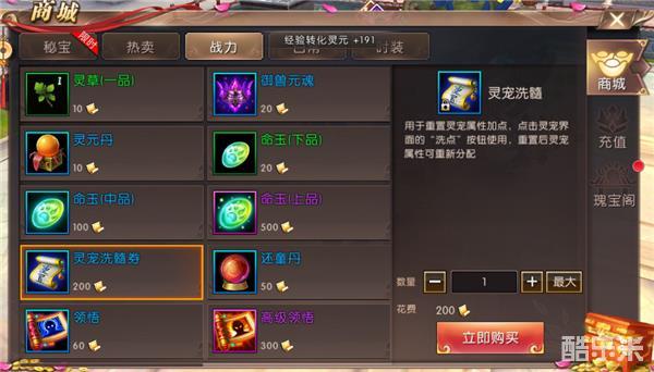 灵宠洗髓券,每个售价200金票。用于重置灵宠属性加点。如果对自己的灵宠加点不满意的可以使用灵宠洗髓券来重置。灵宠加点推荐大家直接推荐加点就可以了。