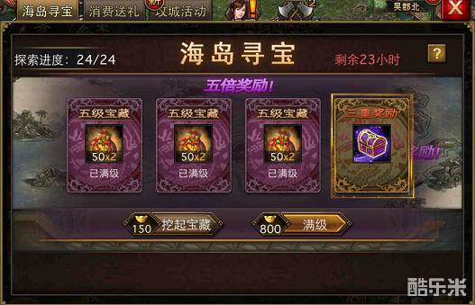 5.指定海岛挖掘宝藏可分别获得2、3或5倍奖励;