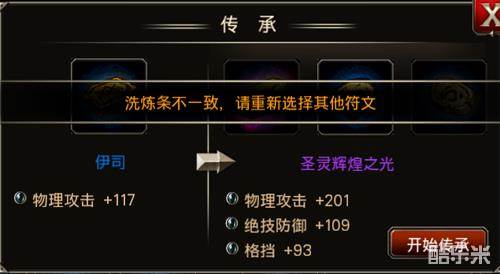 1、传承和被传承的符文,所具有的属性条数必须一致,即具有三条属性的符文只能与具有三条属性的符文进行传承,不能与只具有一条或两条属性的符文进行传承。