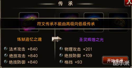 2、如果传承和被传承的符文等级相同(颜色相同),则传承时,两个符文的属性互换。