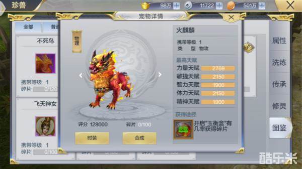 在《九州荣耀》的世界中,上古神兽也能与你并肩战斗啦!火麒麟具有极强的物攻属性,在学习物攻技能后能对敌人造成很大的伤害,是十分珍贵上古神兽哦~