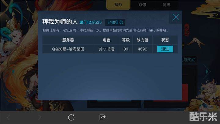 为什么要找好的师父和徒弟,是因为在师徒双修活动中存在一定的竞技。有竞技就有排行榜,排行榜分为“一代宗师”、“最强弟子”、“最强师门”三个全服排行榜;