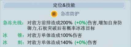 急冻光线:对前排造成200%伤害,增加自身防御力。石板突破后有概率冰冻目标。