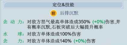念动力:对敌方怒气最高单体造成350%+伤害,并有概率沉默。