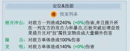 看技能,俯身冲击,对敌方一列造成240%+伤害,并且提升所在一列友方的攻击力和暴击。