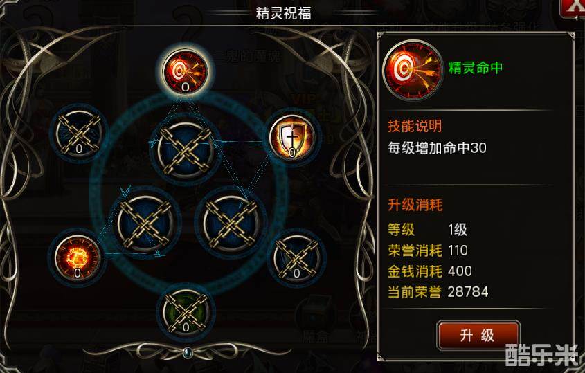精灵祝福技能与角色被动技能一样,需使用相应技能书开启才可升级,可为角色增加属性。