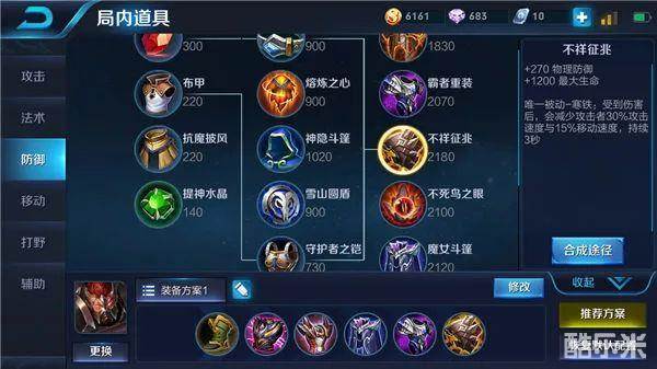 六神装:影忍之足+暴烈之甲+反伤刺甲+魔女斗篷+霸者重装+不祥征兆