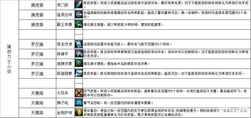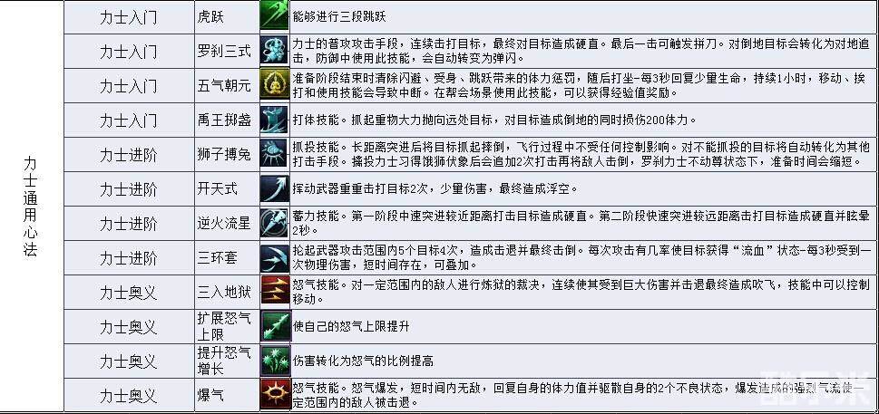 力士职业分支:擒投力士(物理)、罗刹力士(物理)