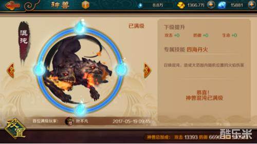 各位主公在解锁完四大神兽之后,便可以激活下一个神兽【混沌】啦~据传说,混沌身形巨大,其状如犬,并且与饕餮、穷奇、和梼杌并称为“中国古代神话四大凶兽”,由此可见混沌是多么可怕。而在《极无双》中,召唤混沌,会造成大范围内随机位置的火焰伤害,是非常有效的清兵手段,战斗时千万不要忘了点击召唤喔~
