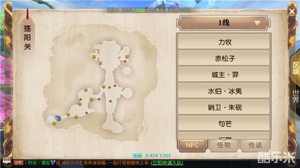 第一个景点是殇阳关悬空石桥,位置在所有轩辕勇士出生地龙女的附近,右上角点开殇阳关地图自动寻路洛灵儿,旧地重游的感觉是不是很好,还是找不到的小伙伴可以看下图片中鼠标的位置就是了