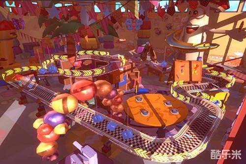 欢乐天地这张赛道远没有它的名字听上去那么欢乐,虽然赛道本身的弯道很少而且场景设计的非常卡通,但大家一定不要被表面现象所蒙蔽,因为赛道中会出现很多飞行道具来对玩家进行干扰,稍有不慎就会被其撞到从而减慢速度。此外,欢乐天地中的弯道虽然不多,但却都是角度很大的直角弯,想要完美漂移过弯还是有很大难度的。