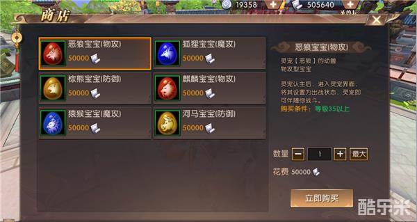 可以通过购买获得,打开灵宠界面,找到右下角的“灵宠商店”,打开可以看到灵宠宝宝蛋的分类,35级:恶狼宝宝(物攻)狐狸宝宝(魔攻)棕熊宝宝(防御)55级:麒麟宝宝(物攻)猿猴宝宝(魔攻)河马宝宝(防御)。购买一只宝宝蛋需要50000银票。