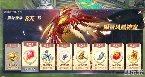 活动所得,累积登录第八天的勇士可以获得一只珍惜神宠凤凰宝宝蛋,凤凰宝宝是耐力宝宝,属于防御型的,其实也是50升55之间过渡用的宝宝,天赋技能是护主。