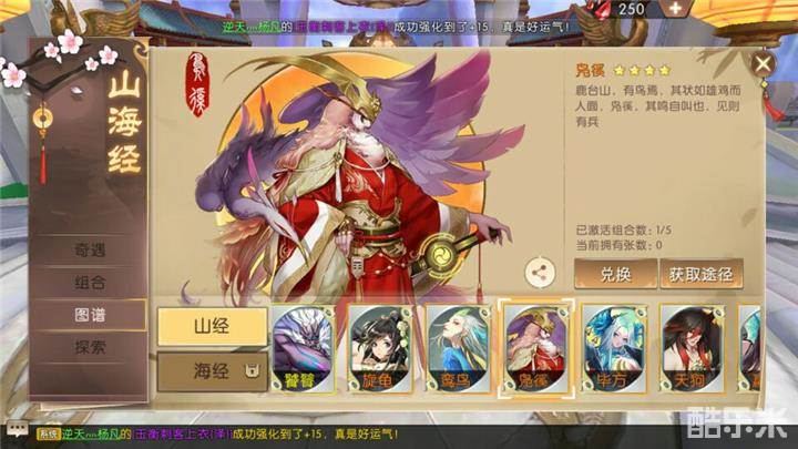 激活50个以上包括50个山经图鉴组合时可以额外获得智力+300、力量+300的属性加成;