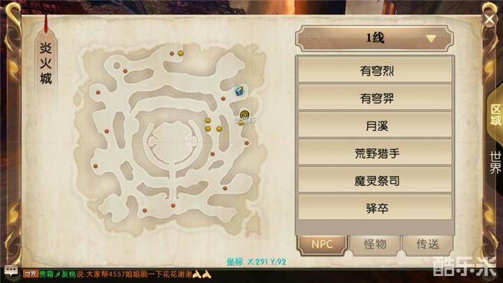 1、点击游戏界面右上角小地图,打开后选择世界,在世界中点击炎火城就可以直接传送到。
