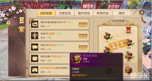 活跃值:点开日常任务,找到活跃值一栏,每日活跃是没有宝石的,在下面的美洲累计活跃1000点可以领取一个完美宝石。