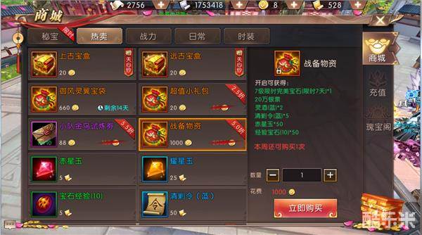 藏宝图:勇士达到30级以后,就会触发皇帝宝藏的任务,每日通过炼宝,活跃值,快捷购买来获取藏宝图(购买需要师门令),藏宝图有几率获得宝石。