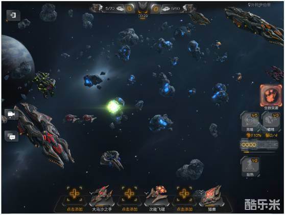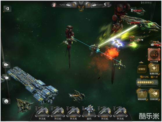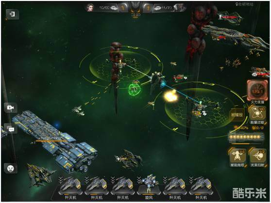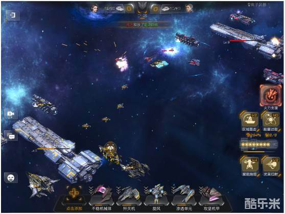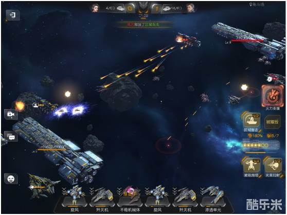 两艘飞船之间布满了陨石,击毁能量陨石可以获得额外的旗舰能量,击毁爆炸陨石则会炸掉周围的单位。