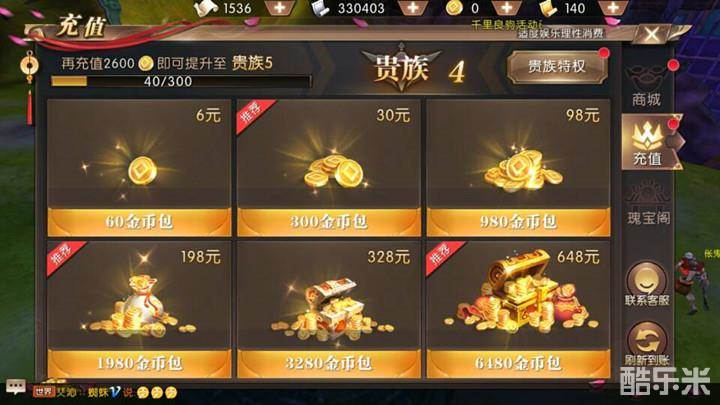 商场里大部分东西全靠金币来购买,而金币的获取方式只要一种,就需要各位勇士来进行充值,一元等于10金币。单次充值最小60金币,最大6480金币。
