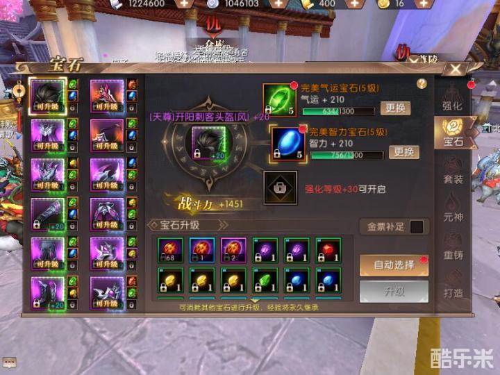 宝石对于职业战斗能力的提升是非常巨大的,镶嵌一颗五级完美属性宝石即可提升一百多点战斗力和相关属性。刺客的宝石镶嵌也是以气运和智力为主,当然这是走爆发路线的选择,勇士们可以选择耐力气运搭配左侧装备,智力气运宝石搭配右侧装备也是可以的。