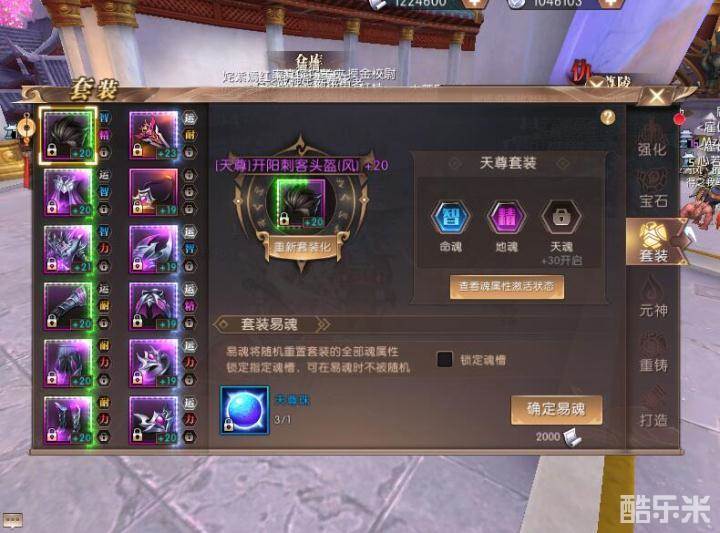 当装备的套装属性激活之后命魂和地魂属性也会随之激活,勇士们可以使用对应的珠子进行洗魂。洗魂的时候一般遵循智力、气运属性哪个出现的部位比较多就去激活哪一种属性,两种属性对刺客都有帮助,这样可以节省珠子早日洗魂成功。