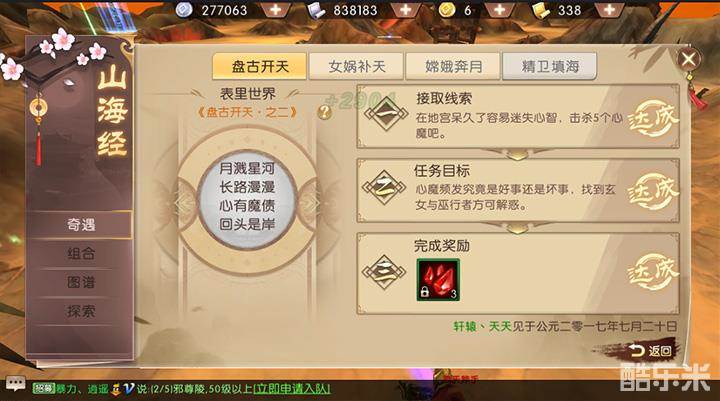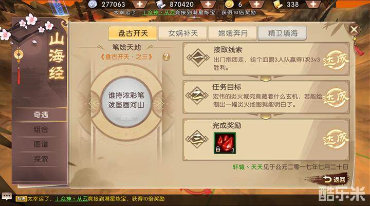 轩辕传奇手游山海经探索攻略-盘古开天