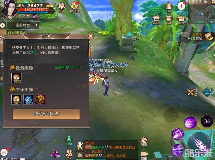师门任务对于各个级别玩家都相当友好,整个任务流程主要分为两种类型:一种是送信类,不用进入战斗到达指定NPC后即可完成任务。一种是战斗试炼任务,不过就算是战斗任务也非常容易完成,基本上一套技能下来怪就残血了。假如我们突然有事情要走开一会儿也不用担心,十五秒之后任务会自动进行下去,非常的人性化。