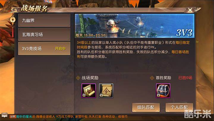 注意事项:3V3竞技场不允许同职业组队进入,胜利会增加积分,失败会扣除积分。