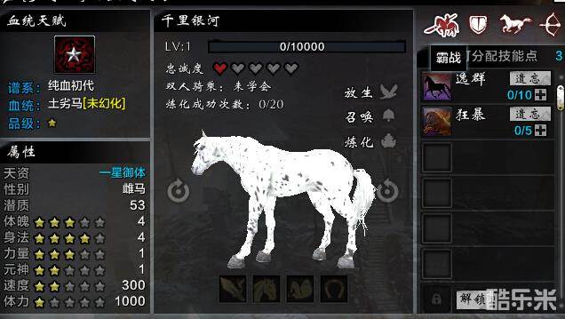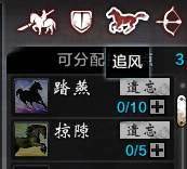 新获取的马匹,每类各有2个初始技能,如图所示。