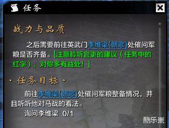 根据任务提示一步步完成对话,可以对马战系统有比较全面的了解,包括马战武器以及战斗技巧。直到完成全部流程,交还任务时可以直接进入马战副本,或者每日通过司剑铭进入副本。
