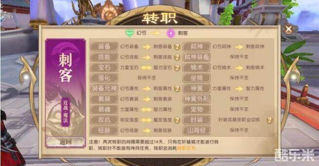 顾名思义,转职就是让玩家们可以由自己的本来职业转变为另外一个职业。如果你玩腻了战士想体验一下刺客法师的极致输出,玩腻了幻弓跑来跑去想尝试一下战士职业的不动如山,转职系统的出现可以满足你这个愿望了。