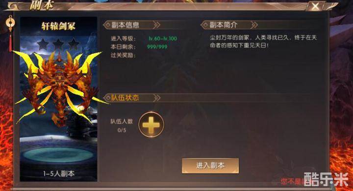 我们按照任务指引来到轩辕剑冢一路上竟然还可以御空飞行,空中感受山海界的冰雪山火极光自然又是另一番缤纷绚烂的画面。来到剑冢入口处可以看到,轩辕剑冢有进入等级和每日次数限制,不过999次也足够你通过关卡了。进入队伍可以为1-5人,今天我们就试试一人进入轩辕剑冢能不能完成任务。