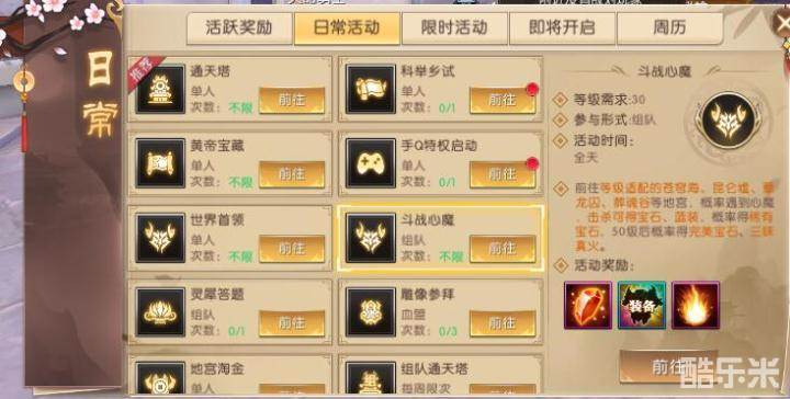 黄帝宝藏,也就是挖图出现骷髅等有一定几率爆出完美属性宝石,所以师门任务大家一定要做,获得的师门勋章都是可以换宝图的。炼宝以及刷怪的时候有几率出现心魔,击杀心魔往往会获得不少的宝石奖励。组队通天塔这个活动大家可以喊上伙伴们一起进行,达到一定层数后必定奖励对应职业的完美属性宝石。