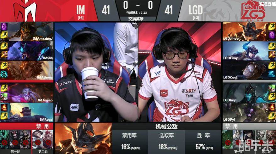 IM拿到的是一套前期节奏阵容,而LGD是需要发育的打团阵容。双方打野均是下半部野区开,在比赛前期,IM中野的强势并没有很好的利用起来,并没有给LGD太大的压力,反而LGD中野拿到优势,团战阵容过早的取得团战期,前期取得了不错的领先。比赛进入中期,LGD稳固扩大优势,虽然在拿下大龙后,被IM团灭大龙buff没有得到太好的利用。但并不影响比赛走势,LGD团战仍是占尽优势。LGD很快的便将IM中下两路高地拿下,即使IM很坚韧的反打将LGD击退,但是无法挽回败局。最终,LGD抱团推下,在高地上开启团战击杀IM四人后拆掉了IM基地!LGD先驰得点,1:0领先IM。