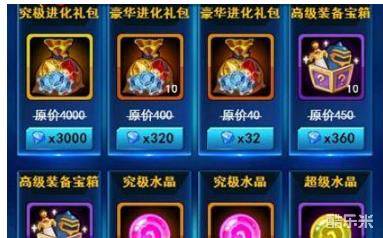 出售货物:进化包、装备箱、经验水晶、觉醒石、元素石